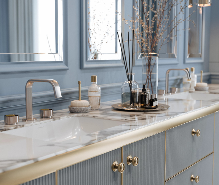 The Eclissi™ Bath Collection is inspired by the astronomical phenomenon when our two planetary luminaries align. Eclissi, Italian for eclipse, projects a clean, modern beauty. The subtle curve of the neck is accompanied by handles with inner and outer circles emulating the meeting of the sun and moon. Each circle is available in a choice of four finishes, with 16 design possibilities for a bespoke approach to match personal style. A choice of two spout designs adds to the stellar options. Unlike their celestial inspiration, these faucets are never obscured; instead they’re designed to shine in whatever space they make their own.
