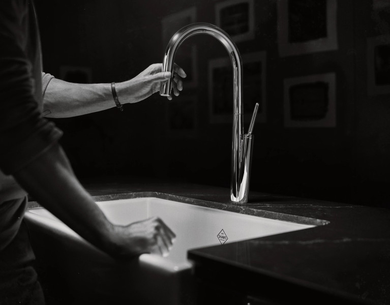 The definition of lateral is on the side, and that distinctive feature separates the Lateral Collection from all the rest. Offsetting the lever and placing it on the edge transforms proportion and perspective. This subtle difference is contrasted and complemented by other design elements. The rounded arc of the spout forms a direct line with the lever while a higher base shifts scale and space. Symmetry and asymmetry, line and curve come together in the Lateral Collection to create a fresh, warmly minimalist balance.