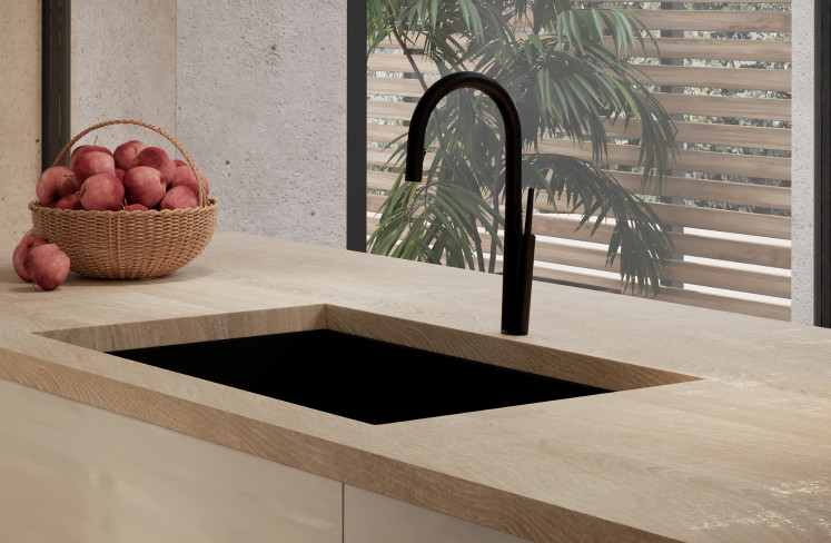 The definition of lateral is on the side, and that distinctive feature separates the Lateral Collection from all the rest. Offsetting the lever and placing it on the edge transforms proportion and perspective. This subtle difference is contrasted and complemented by other design elements. The rounded arc of the spout forms a direct line with the lever while a higher base shifts scale and space. Symmetry and asymmetry, line and curve come together in the Lateral Collection to create a fresh, warmly minimalist balance.